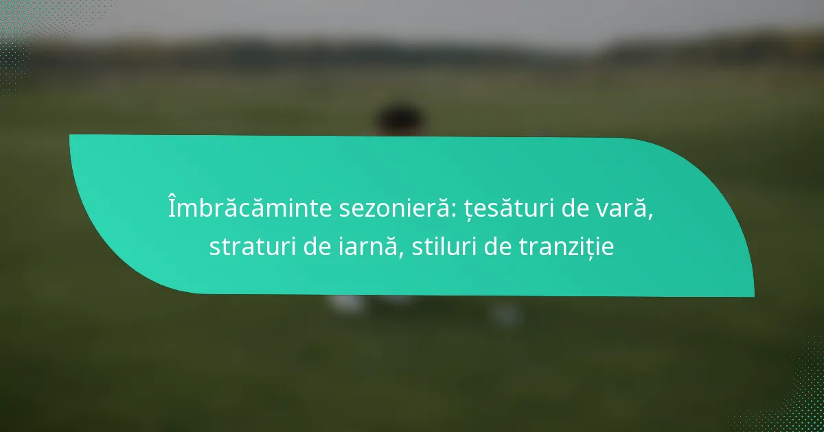 Alegerea îmbrăcămintei potrivite pentru fiecare sezon este esențială pentru confort și stil. Vara, țesăturile ușoare, cum ar fi bumbacul și inul, te mențin răcoros, în timp ce tehnicile de stratificare pentru iarnă asigură căldură și mobilitate. Stilurile de tranziție sunt cheia pentru a te adapta la temperaturile fluctuante din primăvară și toamnă, permițându-ți să rămâi la modă și confortabil pe tot parcursul anului.
